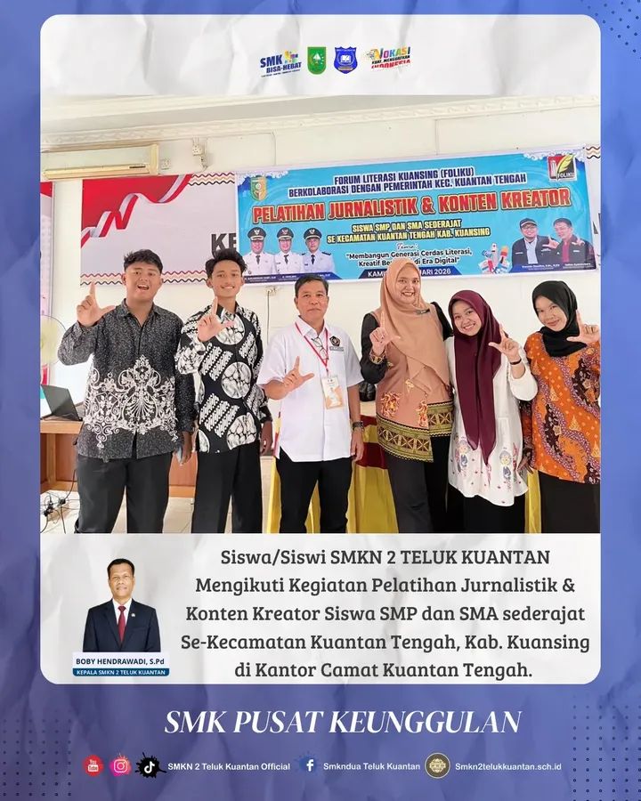 Siswa dan siswi SMKN 2 Telum Kuantan ikuti pelatihan Jurnalistik dan konten kreator , Teluk Kuantan 26 Februari 2026